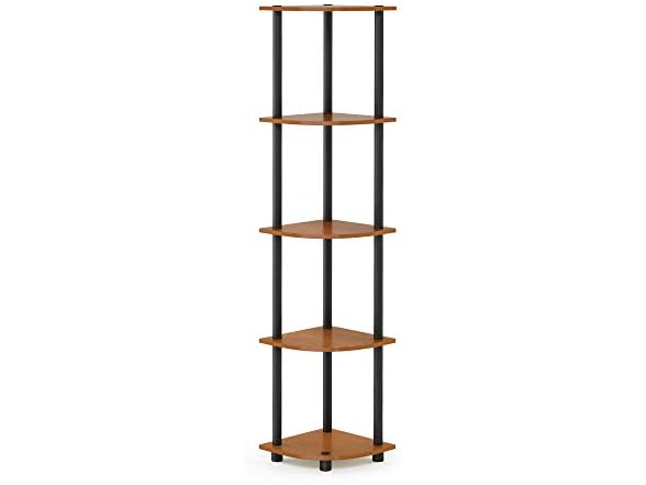 - (1) Furinno TURN-N-TUBE Corner Shelf, 5-Tier Corner Bookshelf, Open Storage Shelves, for Organization and Storage, Living Room, Home Office, Garage, Bedroom, Light Cherry