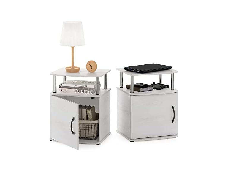 - (1) Furinno Jaya End Side Sofa Table/Nightstand with Door, 2-Pack, White Oak/Stainless Steel Tubes