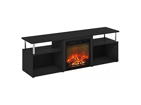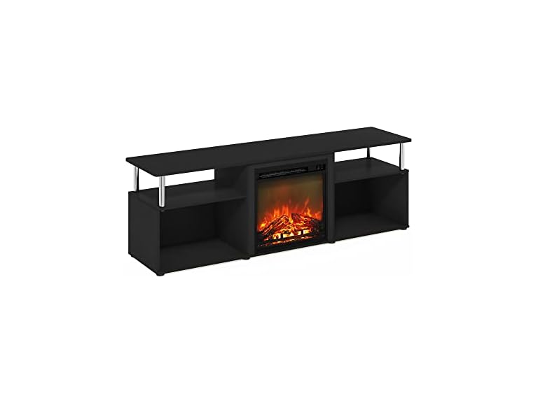 - (1) Furinno Jensen Open Storage Fireplace Entertainment Center for TV up to 70 Inch with Stainless Steel Tubes, Americano/Chrome