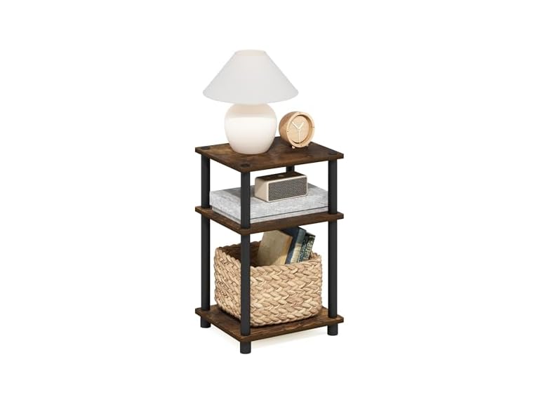 - (1) Furinno JUST Side Table, 3-Tier End Table, Open Shelves Night Stand, Bedside Table, Toolless Assembly, for Living Room, Bedroom, Bathroom, Amber Pine