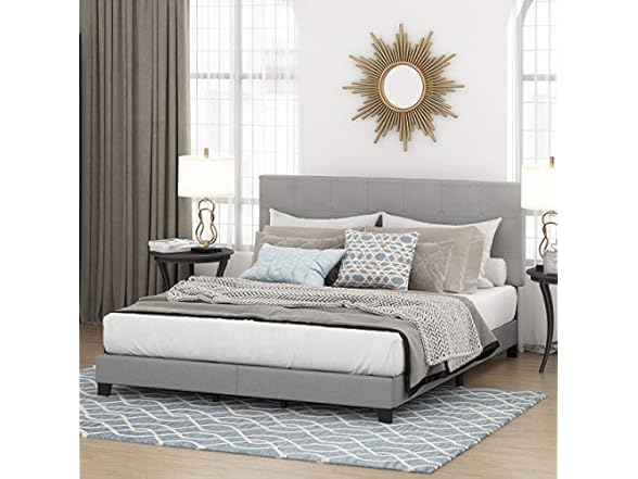 - (1) Furinno Laval Button Tufted Upholstered Platform Bed Frame, California King, Glacier