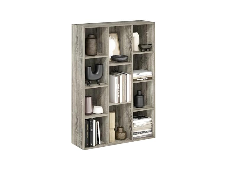 - (1) Furinno LUDER Book Shelf, 11-Cube Bookshelf, Reversible Bookcase, 9.4 x 29.1 x 41.7, for Living Room, Bedroom, Home Office, French Oak