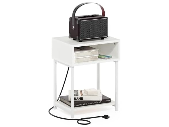 - (1) Furinno Moretti Side Table, 3-Tier End Table with Charging Station, Metal Frame Night Stand, Bedside Table with USB and Type-C Charging Port, for Living Room, Bedroom, White