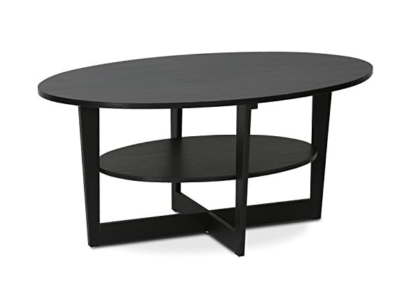 - MODERN OVAL DESIGN: This modern coffee table features an oval two-tier silhouette with clean lines that suits living rooms, apartments, family rooms, and dorms, making the coffee table both versatile and space-friendly