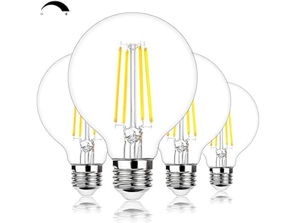 - Vintage Style & Wide Application: Featuring advanced LED filament and high-strength clear glass shell in globe shape, these 100W equivalent LED bulbs are not only luminously functional at night but also aesthetically appealing during day time. Perfect match for pendant light, wall lamp, vanity light, and mirror light in your bedroom, bathroom, living room and kitchen.
