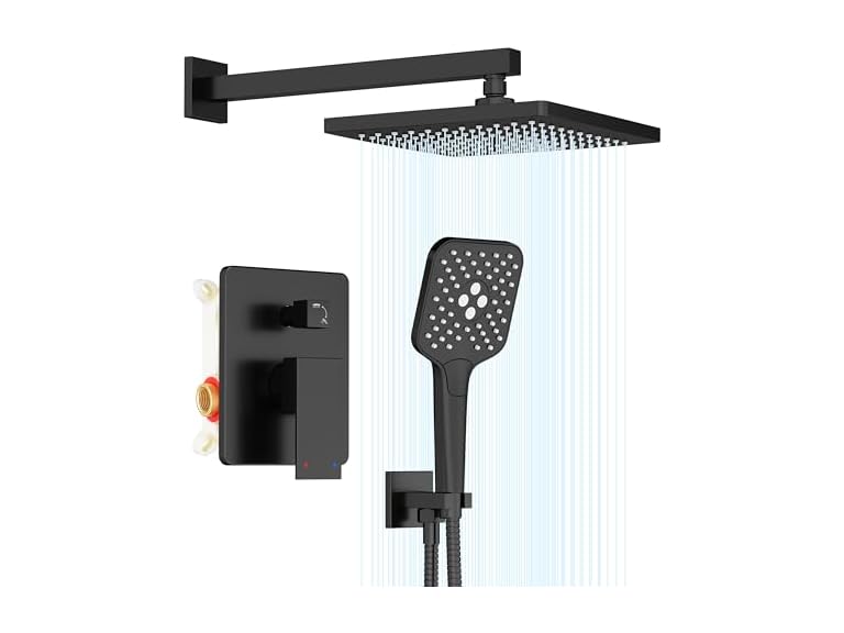 - 【High-Pressure Shower Faucet Set】10 inches rain shower head features pressurized technology for excellent performance even in low water pressure areas. Silicone nozzle with self-cleaning function, you can save your time to clean. Features 3 settings handheld shower head that deliver a great performance, rain shower, rain shower with massage, massage.