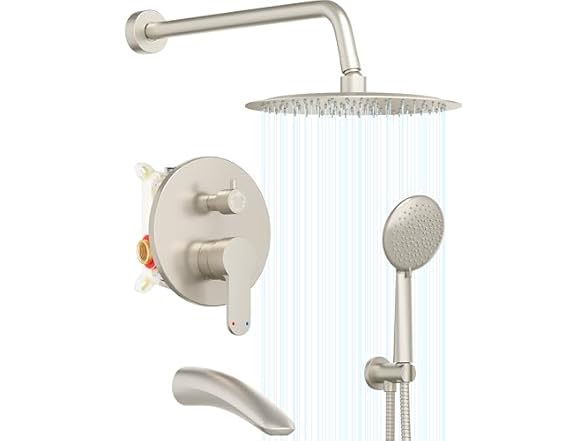 Gabrylly Shower System w/ Tub Spout, Brushed Nickel
