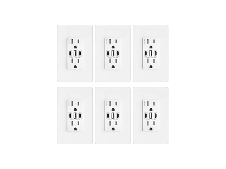 - (1) Amerisense GaN 30W 6Amp 3-Port USB Wall Outlet, 15 Amp Tamper-Resistant Receptacle with 2 USB Type C & 1 Type A Port, USB Charger for iPhone/iPad/Samsung/LG/HTC, UL Listed - 6 Pack
