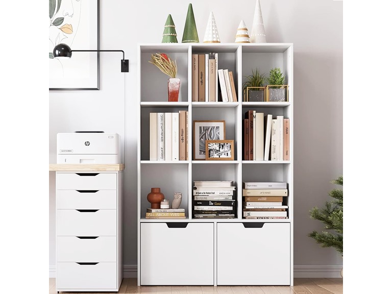 - GarveeHome Bookshelf, Modern Bookcase Storage Cabinet with Drawers and 9 Cube, Free Standing Storage Organizer Book Shelves in Living Room/Home/Office
