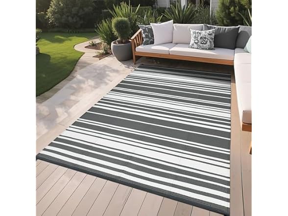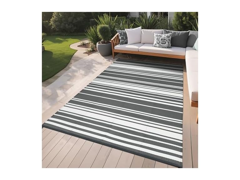 - (1) GarveeHome Outdoor Rug Mat for Patio, 8x10 Plastic Straw Rug, Modern Striped Outdoor Camping Rugs for Patio, RV, Porch, Deck, Backyard, Balcony, Camping, Trailer (Your Choice of Color)