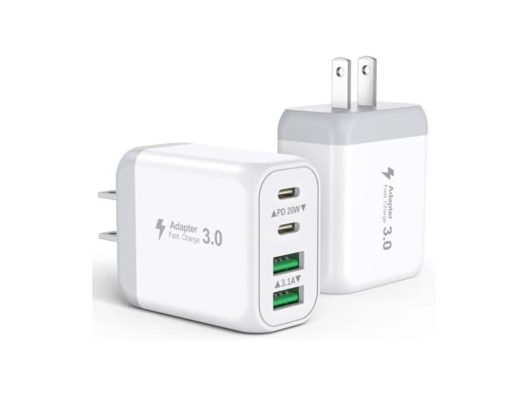 - 【2-Pack 40W USB C Charger Block】This USB C charger block supports PD 3.0 and QC fast charging with up to 40W total output. Each USB-C port delivers 20W fast charging—charge your iPhone from 0% to 50% in just 30 minutes. The USB-A ports provide 3.1A/5V output for high-speed charging of compatible devices. This fast charger USB C works perfectly as your daily phone charger, delivering efficient power anytime, anywhere.