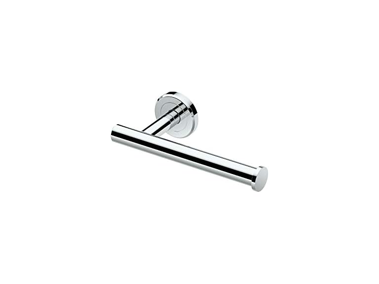 - Holds a single toilet paper roll including jumbo and mega sizes and doubles as a hand towel bar.