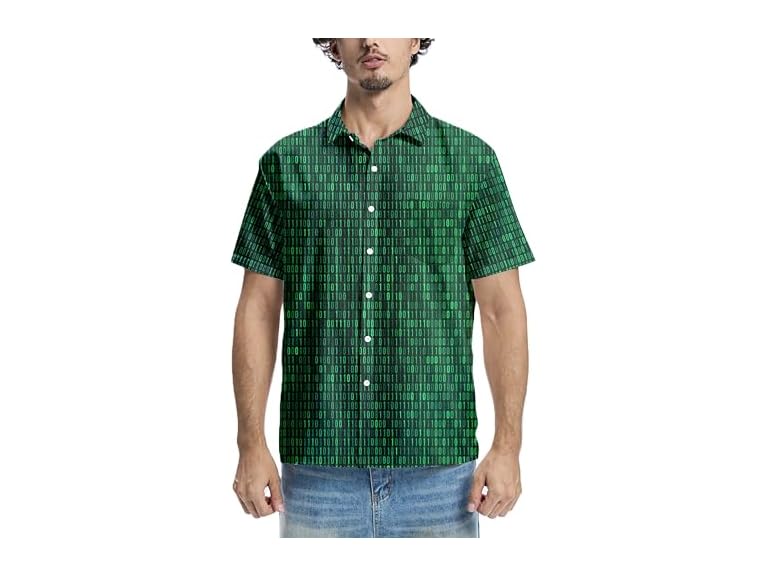 - (1) GEEKSOUTFIT Geek Nerdy Funny Shirts for Men-Men's Novelty Printed Button Up Shirt Binary Code Shirt Green