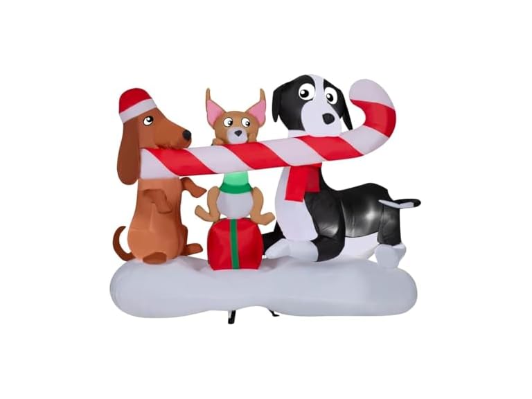 - (1) Gemmy Christmas Inflatable Dogs Sharing a Candy Cane Scene, 4.5 ft Tall, Multi