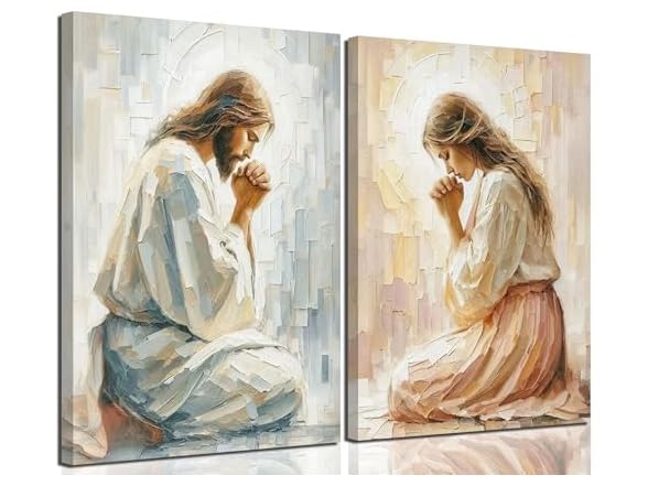 - (1) Generic 2Pcs Jesus Canvas Wall Art Jesus and Woman Praying Wall Decor Pictures Christianity Jesus Heals A Woman Always With You Posters Prints for Church Prayer Room Bedroom Paintings Artwork Home Decoration