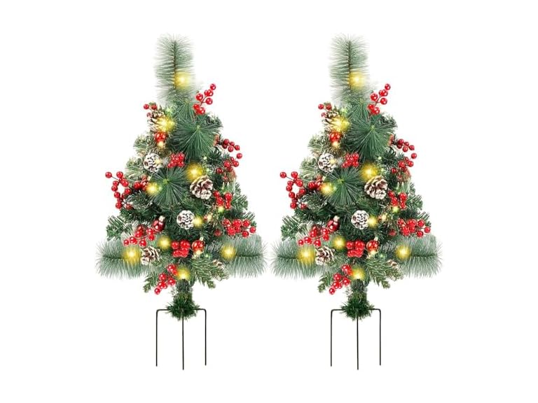 - Pre-Lit with Warm White LEDs | Each tree comes pre-strung with 50 warm white LED lights, casting a soft, inviting glow perfect for nighttime viewing. The illumination enhances the holiday spirit, creating a cozy and magical atmosphere for the Christmas season.