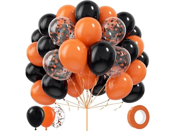 - (1) Generic 70 Pcs Halloween Balloons, Black and Orange Balloons, 12inch Black Orange Confetti Balloon for Halloween, Celebration Trick or Treat Spooky Ghost Party, Birthday Themed Party Supplies