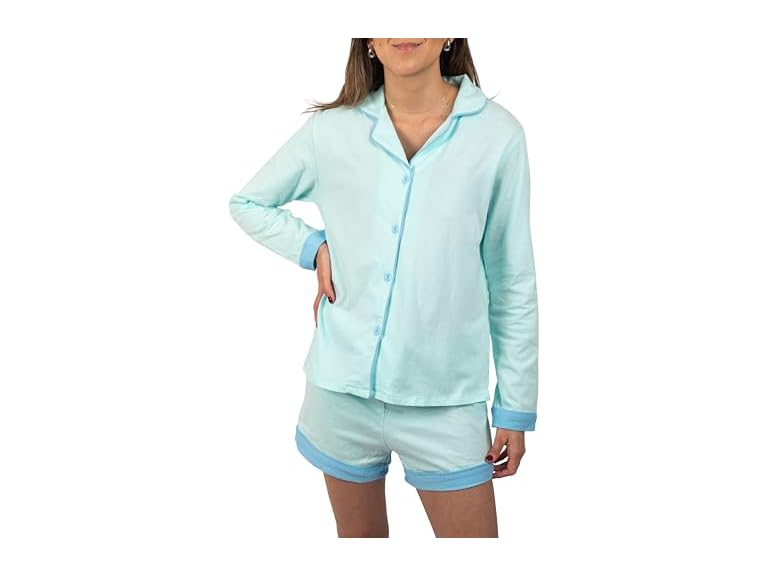 - (1) Generic COMFY DREAMS Womens Pajamas Set Button Down Long Sleeve Sleepwear Bridemaids Soft Pj Lounge Sets S-L Blue