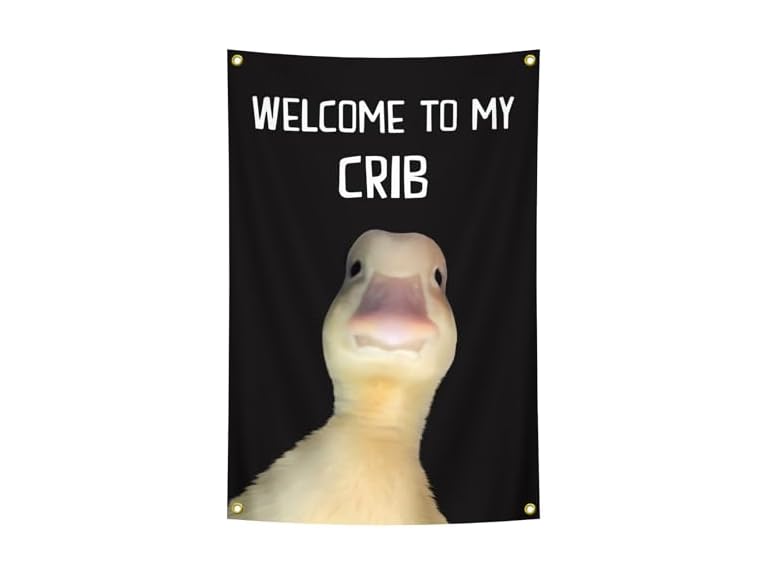 - Fun Poster Welcome to My Crib Flag 2X3 FT (60X90CM) University Dormitory Garage Tailgate Banner Fun Party Men's Cave Decoration Flag (Black)