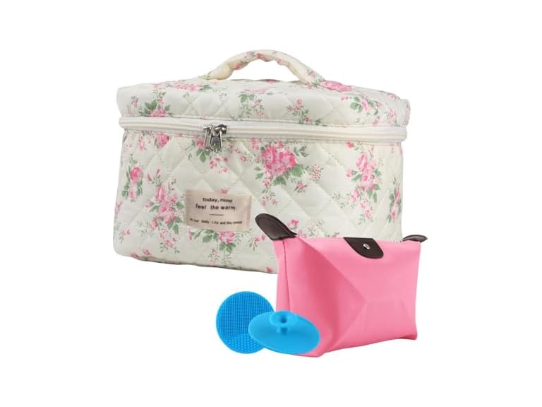 - (1) Generic Large Travel Quilted Makeup Bag for Women, Floral Cotton Cosmetic Bag, Coquette Aesthetic Floral Toiletry Organizer Bag
