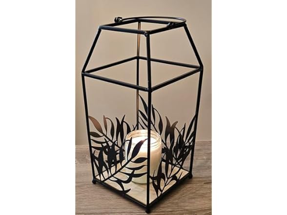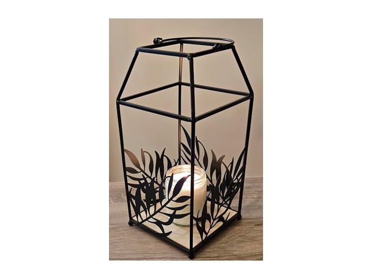 - (1) Generic Modern Metal Candle Lantern with Leaf Design and Hanging Ring, Black, Indoor/Outdoor 12" Tall, Decorative, Unique Centerpiece