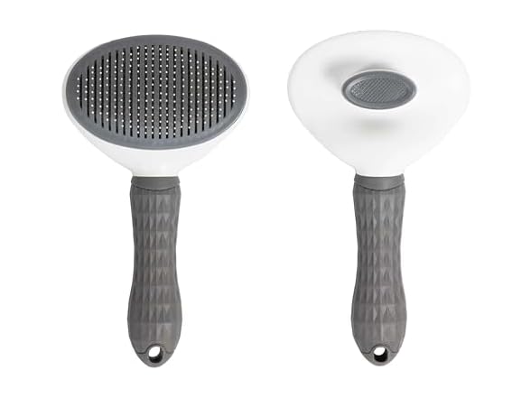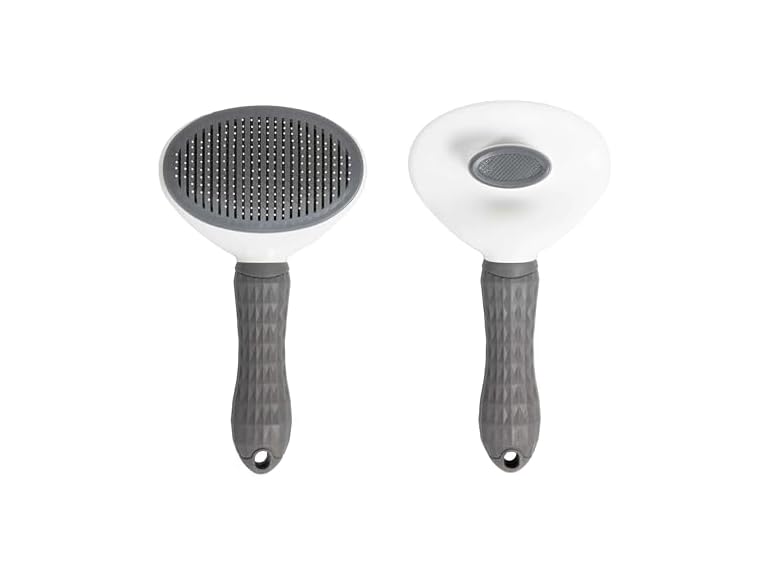 - Comfortable and Nonslip Handle. Our cat shedding brush is designed with a comfort-grip and nonslip handle, and this self cleaning cat brush also has a massaging effect for your hand and you won't get tired easily when you brush your pet.