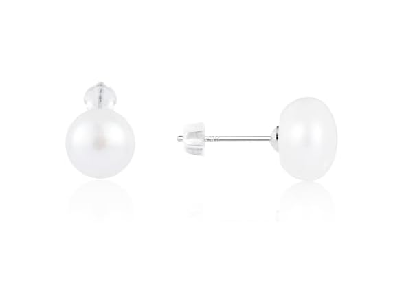 - ❤️PEARL EARRINGS❤️: Natural freshwater cultured pearl, handpicked AAA quality white round button earrings studs. Sterling Silver plated with 18k white gold.