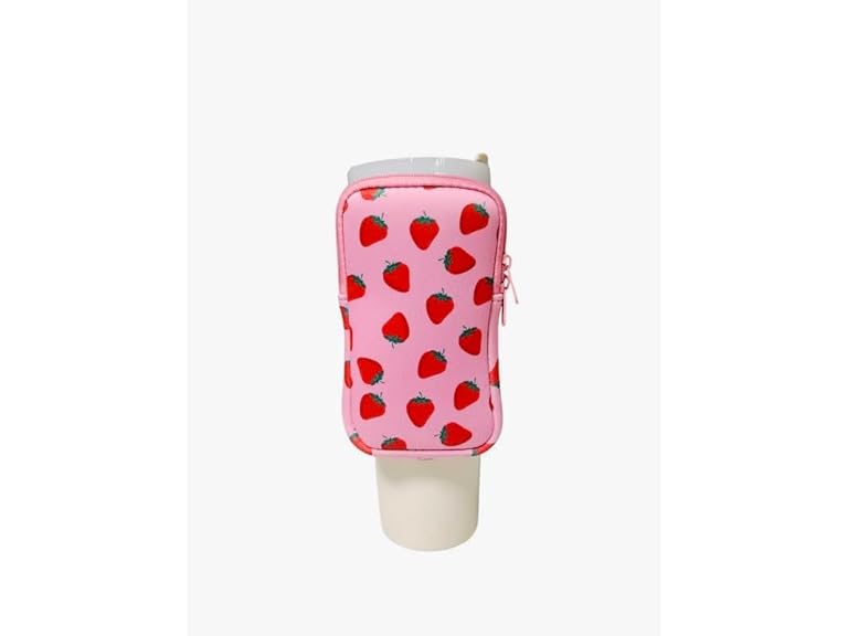 - (1) Generic Strawberry Water Bottle Pouch Accessories for Stanley, Tumblers, Outdoor Accessories, Gym, Fanny Pack, Fits Phone, Cards, Keys, Wallet, Earphone, Sports & Adjustable Non-Slip Straps