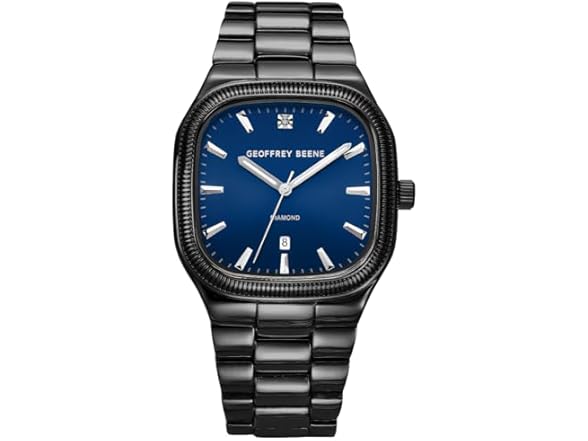 - Geoffrey Beene Men's Square Metal Dress Watch, Genuine Diamond Accent Blue Dial with Date, Classic Quartz, Elegant Design, Adjustable Bracelet, Business Formal