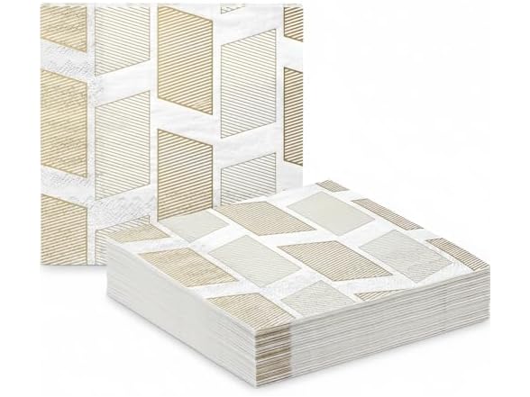 - GeoScape White & Gold 3-Ply Paper Luncheon Napkin, 6.5 Inch, Pack of 20