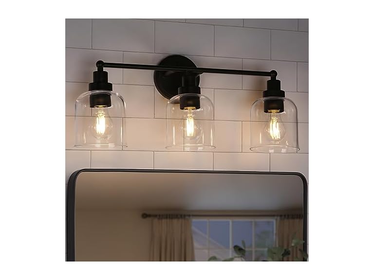 In the Box: (1) GEPOW Bathroom Wall Light Fixtures, 3-Light Black Vanity Light with Clear Glass Shade, Modern Farmhouse