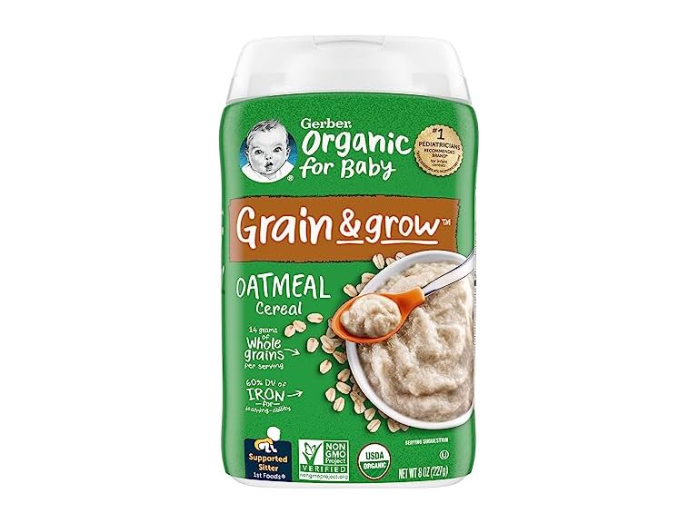 - Gerber Organic for Baby 1st Foods Grain & Grow Cereal, Oatmeal Cereal, Made with Whole Grains & Iron, USDA Organic & Non-GMO 8 Ounce (Pack of 1)