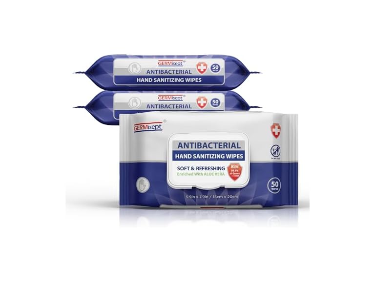 - TRAVEL-FRIENDLY PACKAGING: Travel-Friendly 50-Count Pack for On-the-Go Hygiene: Germisept Hand Sanitizing Wipes are designed with your convenience in mind. The 50-count pack is compact and travel-friendly, making it easy to carry with you wherever you go. Whether you're commuting to work, traveling on an airplane, or simply running errands, these wipes can be effortlessly stowed in your bag or pocket, ensuring that cleanliness and hygiene are always within reach.