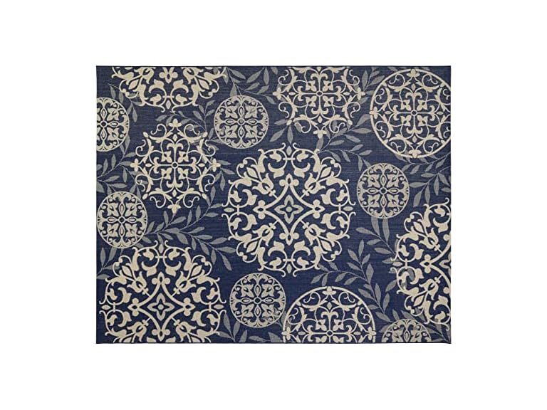 - (1) Gertmenian Indoor Outdoor Classic Flatweave Area Rug, Stain & UV Resistant Carpet, Deck, Patio, Poolside & Mudroom, 2x6 Ft Runner, Abstract Medallion, Navy Blue, 22029