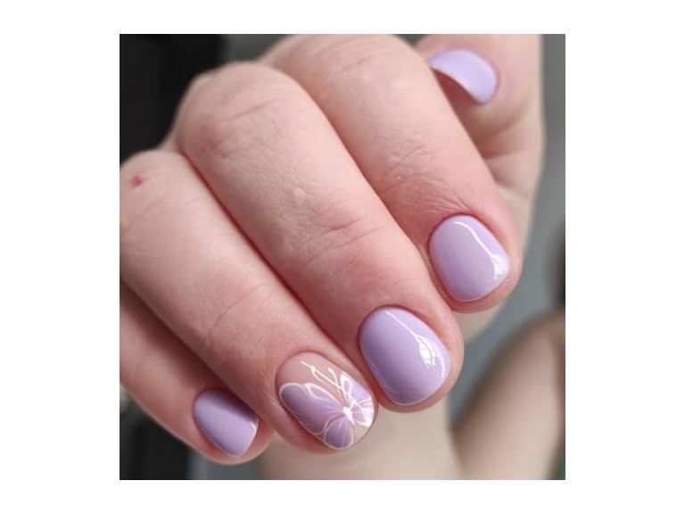 - (1) geyakal Purple Press on Nails Short Square Fake Nails Press ons with Designs Butterfly False Nails Glossy Full Cover Acrylic Glue on Nails Cute Artificial Spring Stick on Nails for Women Nails Manicure 24Pcs