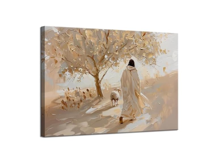 - (1) GGX Jesus Leaves the 99 Sheep Canvas Wall Art Christian Jesus With Lamb Wall Decor Picture The Lost Sheep Bible of Parable Poster Print Good Shepherd Artwork for Prayer Room Church Decor 16x24in