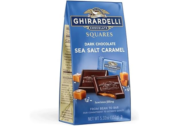 - One (1) 5.32 oz bag of GHIRARDELLI Dark Chocolate Sea Salt Caramel SQUARES – Premium individually wrapped dark chocolate SQUARES filled with luscious caramel and a touch of sea salt