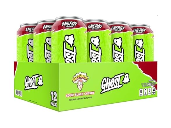 - (1) Ghost Energy Sour Black Cherry Warheads 16 fl oz. (12 Pack)