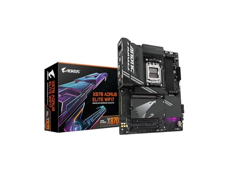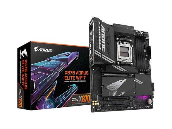 - (1) GIGABYTE X870 AORUS Elite WIFI7 Motherboard - Supports AMD Ryzen 9000 CPUs, 16+2+2 Phases VRM, up to 8000MHz DDR5 (OC), 3xPCIe 5.0, Wi-Fi 7, 2.5GbE LAN, USB 4
