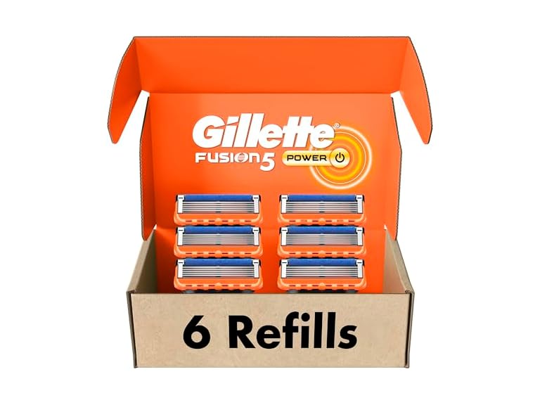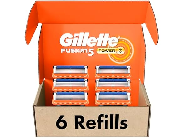 - Gillette Fusion5 Power Razor Refills for Men, 6 Razor Cartridges, Larger Lubrication Strip, Precision Trimmer, 5-Blade Razor Blades for Close Shave