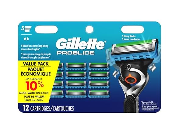 - (1) Gillette Fusion5 ProGlide Razor for Men, 12 Blade Refills with Precision Trimmer
