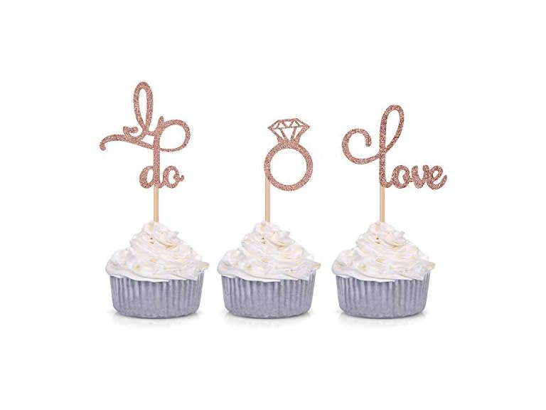 - (1) Giuffi Set of 24 Rose Gold Glitter Love Diamond Ring I Do Cupcake Toppers for Wedding Bridal Shower Decorations