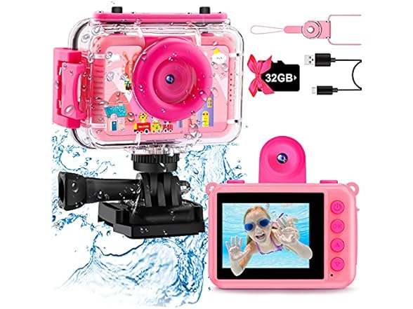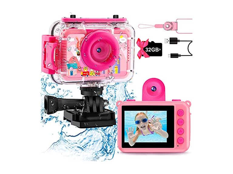 - Shockproof & Waterproof Camera - Our kids underwater camera comes with waterproof and shockproof case, providing effective anti-fall protection. Your kids can capture amazing pictures up to 30 meters (100 feet) underwater. This digital camera for kids is easy to install, ideal for your kids to record their brave moments in swimming, skating, biking and skateboarding. Great pool toys for kids ages 8-12.