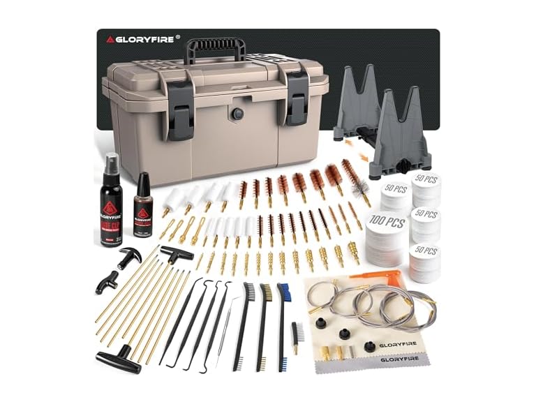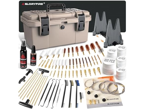 When it comes to maintaining your guns, nothing compares to the reliability and effectiveness of the GLORYFIRE Gun Cleaning Kit. As a trusted name in hunting gear and shooting accessories, GLORYFIRE brings you an elite gun cleaning kit that embodies quality, versatility, and ease of use. This universal gun cleaning kit is designed for all guns—making it the essential tool every shooter needs. Crafted with precision, our cleaning kit includes high-end brass brushes, bronze bore brushes, and reinforced brass rods, ensuring thorough barrel clean and smooth action lubrication. The comprehensive set features brass jags and slotted tips, along with cleaning patches and swabs, allowing you to select your style based on your specific gun needs. Whether you're a seasoned professional or a beginner, this complete cleaning system guarantees long-lasting performance and effective gun maintenance. The GLORYFIRE Gun Cleaning Kit stands out with its user-friendly design. Packaged in a convenient storage case, this portable gun cleaning kit is perfect for travel and outdoor adventures. With multiple compartments, it keeps your gun accessories organized, ensuring you have everything at your fingertips when you need it most. Plus, the included needle oiler and CLP gun cleaning oil provide a reliable solution for rust prevention and gun protection, enhancing performance and improving accuracy. Our deluxe and universal cleaning kit is not just about functionality; it's about preserving a rich heritage of responsible gun ownership. At GLORYFIRE, we understand the passion that hunters and shooters have for their equipment. That's why our products are engineered to extend the lifespan of your guns while preventing malfunctions and reducing wear and tear. The GLORYFIRE Gun Cleaning Kit as a must-have in any range bag, making it the perfect gift idea for shooting sports fans and hunting enthusiasts alike. With its affordable price point and exceptional quality, this kit is frequently bought together with other hunting gear, making it a great value bundle. Join the ranks of satisfied customers who trust for their gun care needs. Experience the difference of a professional-grade cleaning kit designed for efficiency and effectiveness. Elevate your shooting experience today with the Gun Cleaning Kit—where tradition meets innovation in gun maintenance.
