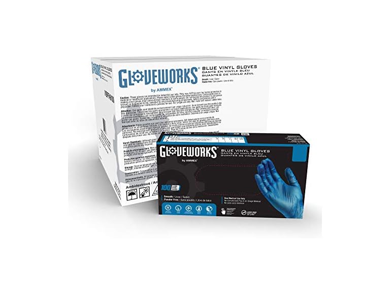 - (1) GLOVEWORKS Blue Vinyl Industrial Gloves, Case of 1000, 3 Mil, Size Large, Latex Free, Powder Free, Food Safe, Disposable, Non-Sterile, IVBPF46100