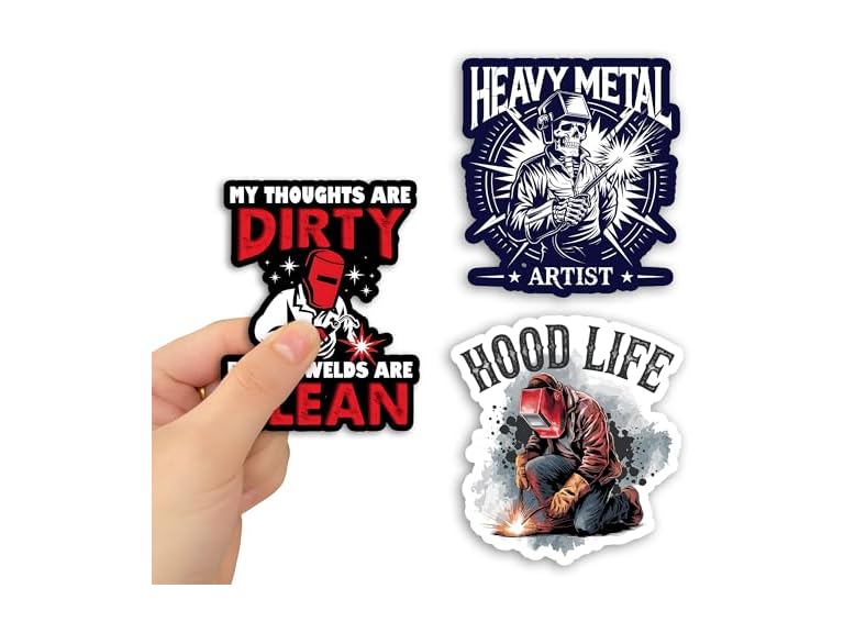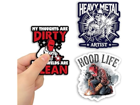 - (1) GNAART Set 3Pcs Heavy Metal Artist, My Thoughts are Dirty But My Welds are Clean, Hood Life Sticker Welder Hard Hat Work Humor Bookish Kindle Waterproof 2 Inches Die-Cut Vinyl for Water Bottle Laptop Phone