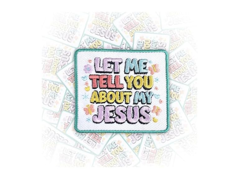 - (1) GNAART Let Me Tell You About My Jesus Patch 3 Inches Iron On/Sew On Embroidered Applique for Trucker Hats Clothes Backpack Christian Religious Jesus DIY Funny Accessories Gifts for Friends Coworkers Dad Mom