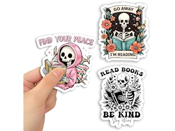 - (1) GNAART Set 3Pcs Find Your Peace, Read Book Be Kind Stay Weird, Go Away I'm Reading Sticker Skeleton Flower Bookish Kindle Waterproof 2 Inches Die-Cut Vinyl for Water Bottle Laptop Phone for Friend Coworker
