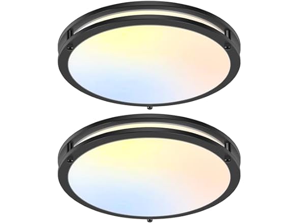 - (1) 18'' 50W Flush Mount Ceiling Light, Black Dimmable LED Ceiling Lights Fixtures with 5CCT (2700K/3000K/3500K/4000K/5000K Adjustable), 5600 Lumens Ceiling Lighting for Kitchen Hallway Stairwell, 2-Pack