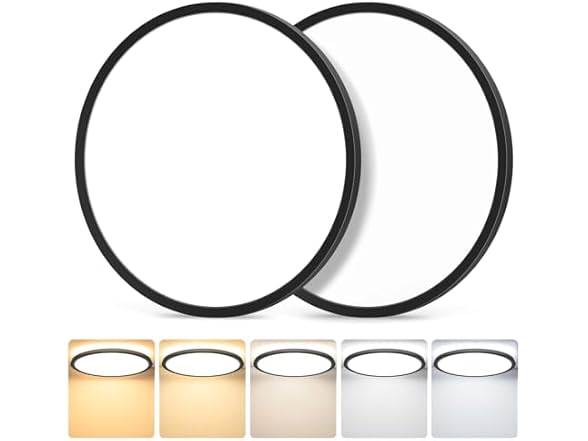 - (1) GoBright 2-Pack Flush Mount LED Ceiling Light Fixtures Black, 12Inch Dimmable Ceiling Lamp 2700K/3000K/4000K/5000K/6500K 5 Color Selectable, 24 Watt 3200LM Low Profile Ceiling Light for Kitchen Bedroom Hallway